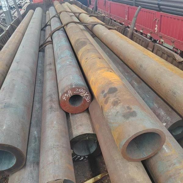 Seamless tubes made of medium carbon steel such as 45 and 40Cr are used to manufacture mechanical parts, such as stressed parts of automobiles and tractors. Generally, seamless steel pipes must ensure strength and flattening tests. Hot-rolled steel pipes are delivered in a hot-rolled or heat-treated state; cold-rolled steel pipes are delivered in a heat-treated state.